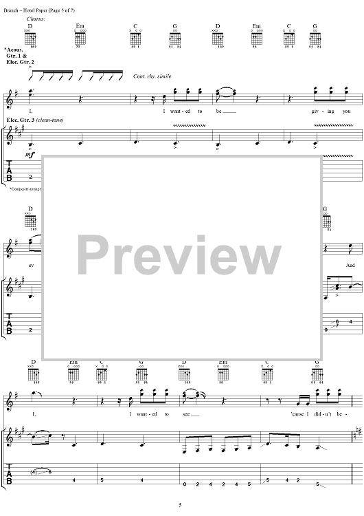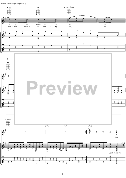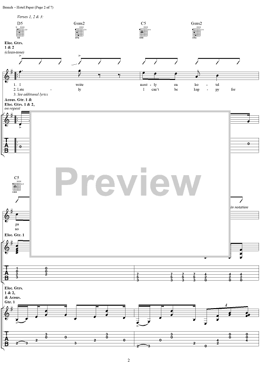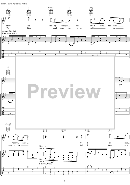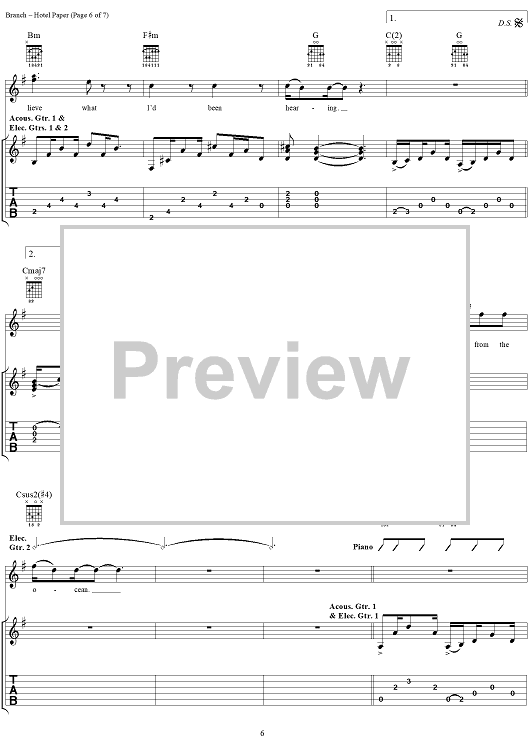 "Hotel Paper" Sheet Music by Michelle Branch
