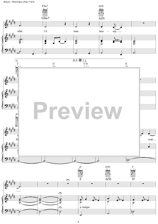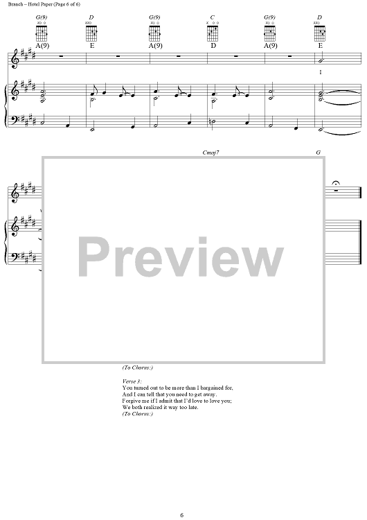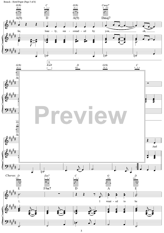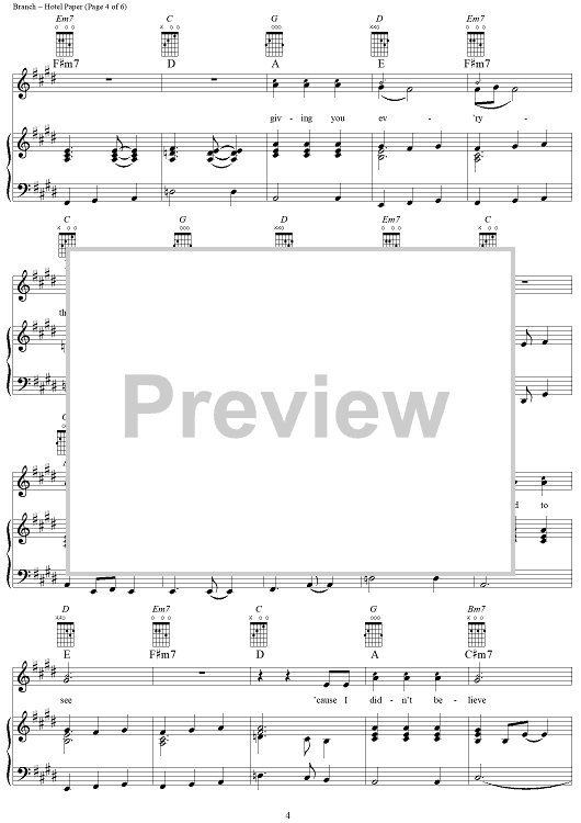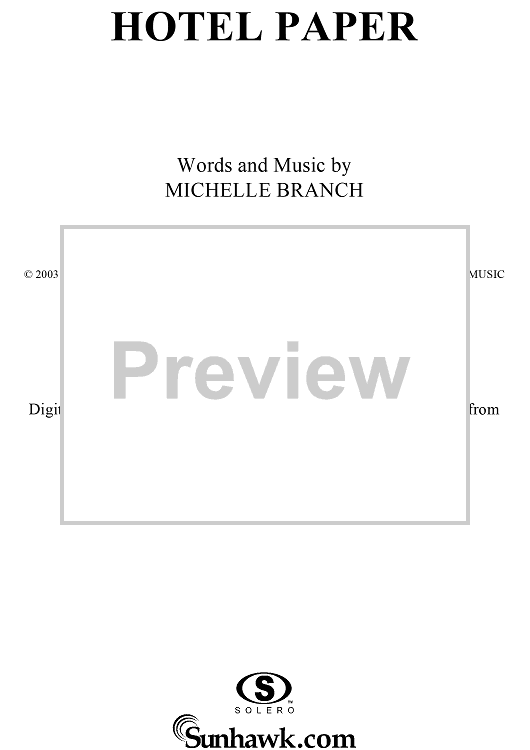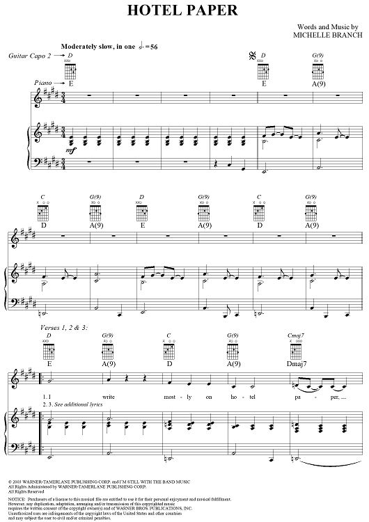 Digital Sheet Music for Hotel Paper by Michelle Branch scored for Piano/Vocal/Chords; id:305264