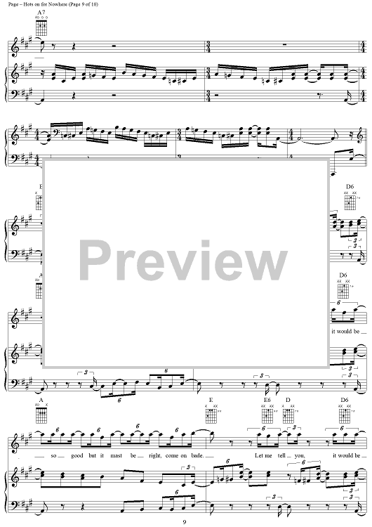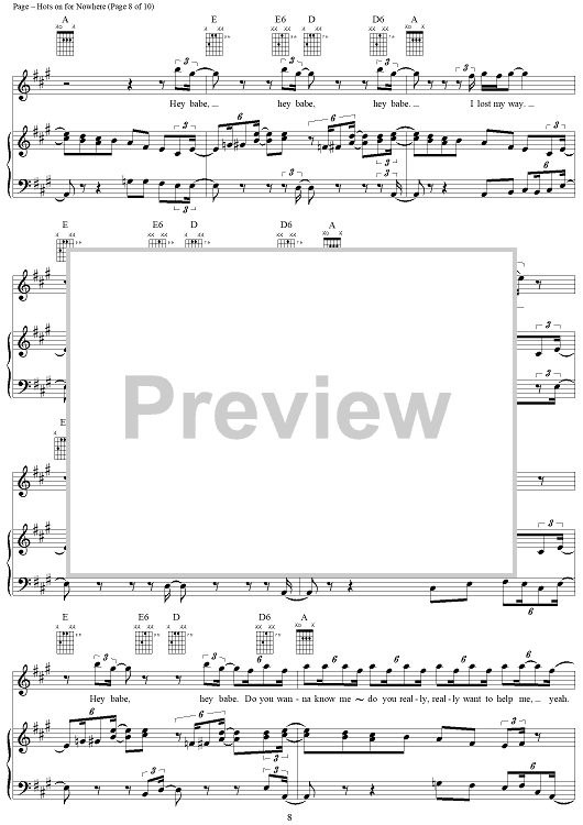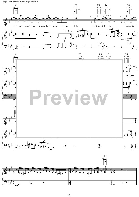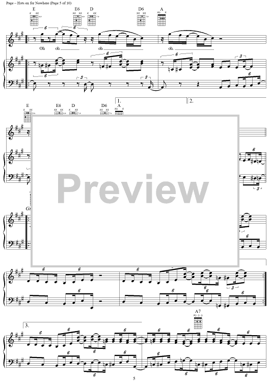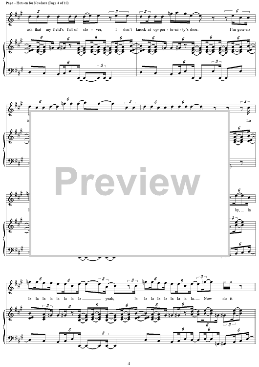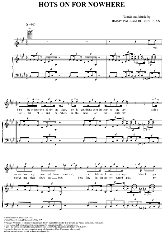 Digital Sheet Music for Hots On For Nowhere by Jimmy Page, Led Zeppelin, Robert Plant scored for Piano/Vocal/Chords; id:253969