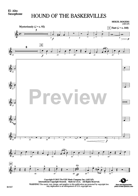 "Hound of the Baskervilles - Eb Alto Sax" Sheet Music by Mekel Rogers