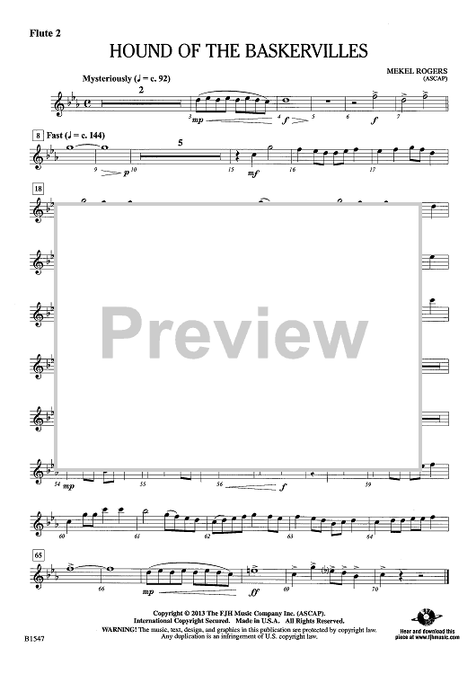 Digital Sheet Music for Hound of the Baskervilles - Flute 2 by Mekel Rogers scored for Concert Band; id:439099