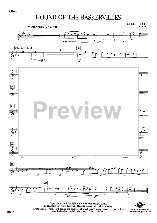 "Hound of the Baskervilles - Oboe" Sheet Music by Mekel Rogers