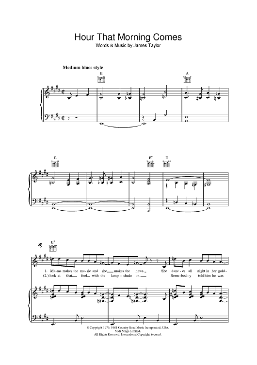 Digital Sheet Music for Hour That Morning Comes by James Taylor scored for Piano/Vocal/Chords; id:393321