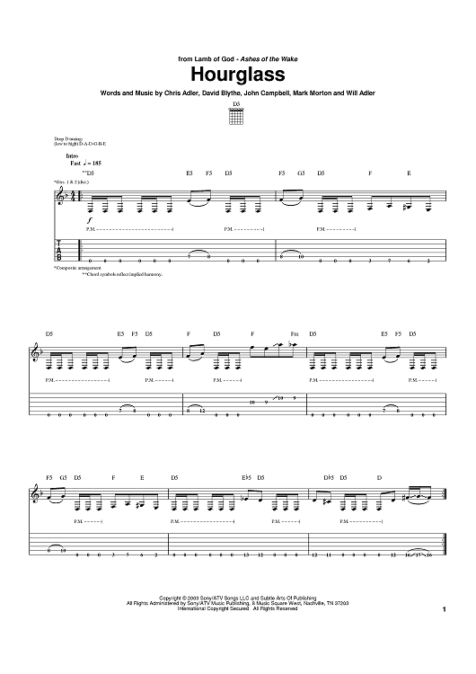 Digital Sheet Music for Hourglass by Chris Adler, Will Adler, Randy Blythe, John Campbell, Lamb Of God, Mark Morton scored for Guitar Tab; id:390164