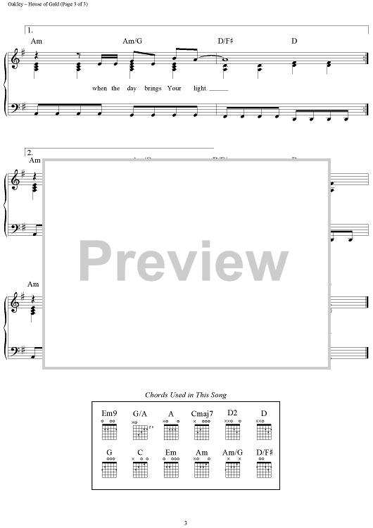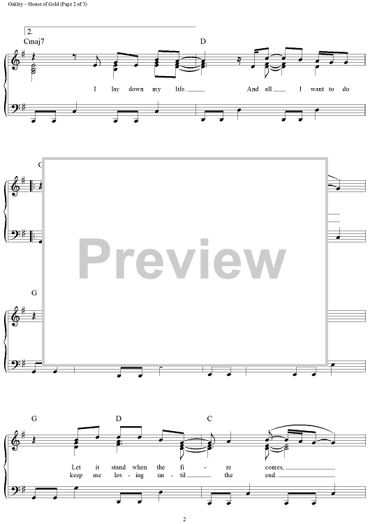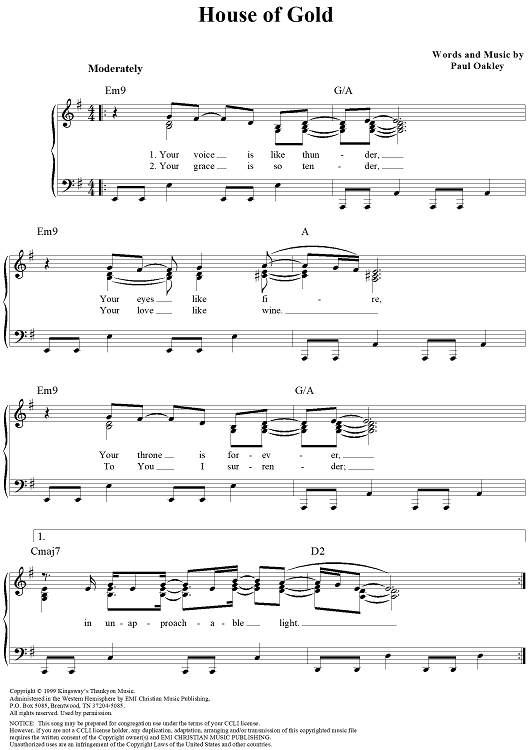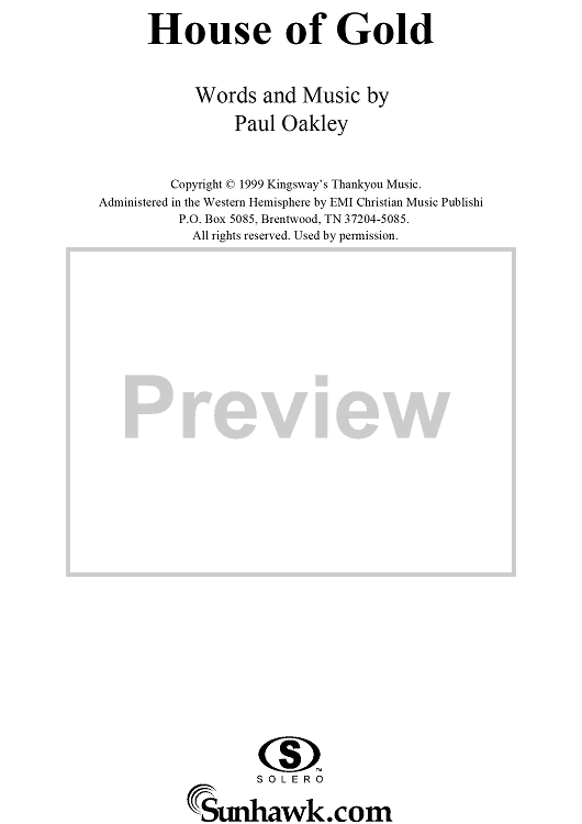 Digital Sheet Music for House of Gold by Paul Oakley scored for Piano/Vocal/Chords; id:120180