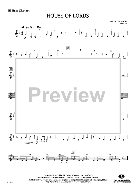Digital Sheet Music for House of Lords - Bb Bass Clarinet by Mekel Rogers scored for Concert Band; id:440199