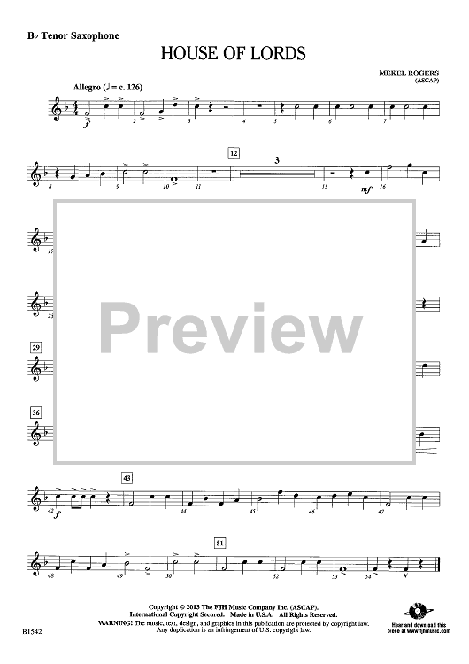 "House of Lords - Bb Tenor Sax" Sheet Music by Mekel Rogers