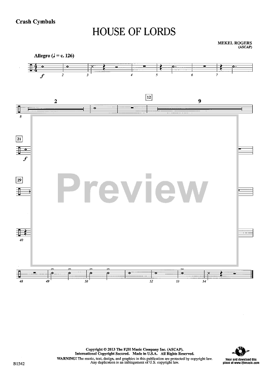 Digital Sheet Music for House of Lords - Crash Cymbals by Mekel Rogers scored for Concert Band; id:440213