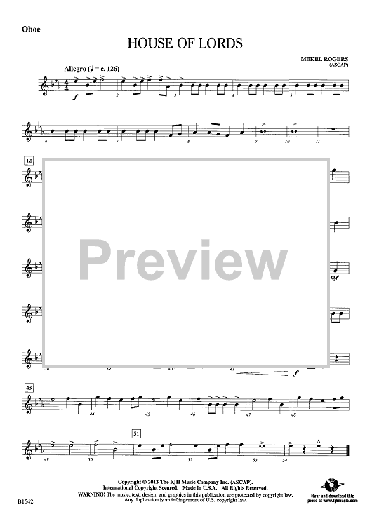 Digital Sheet Music for House of Lords - Oboe by Mekel Rogers scored for Concert Band; id:440195