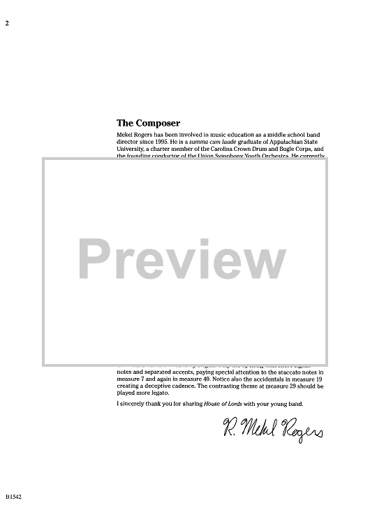 Digital Sheet Music for House of Lords - Score Cover by Mekel Rogers scored for Concert Band; id:440193
