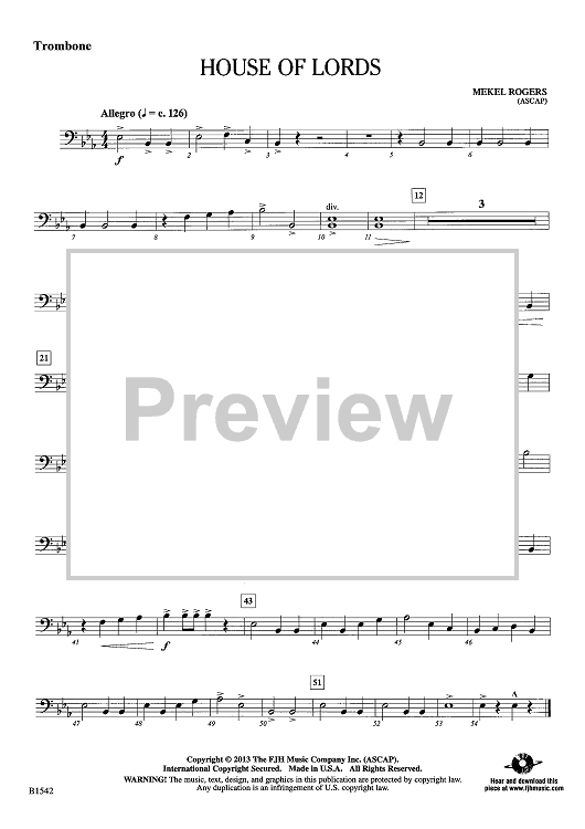 "House of Lords - Trombone" Sheet Music by Mekel Rogers