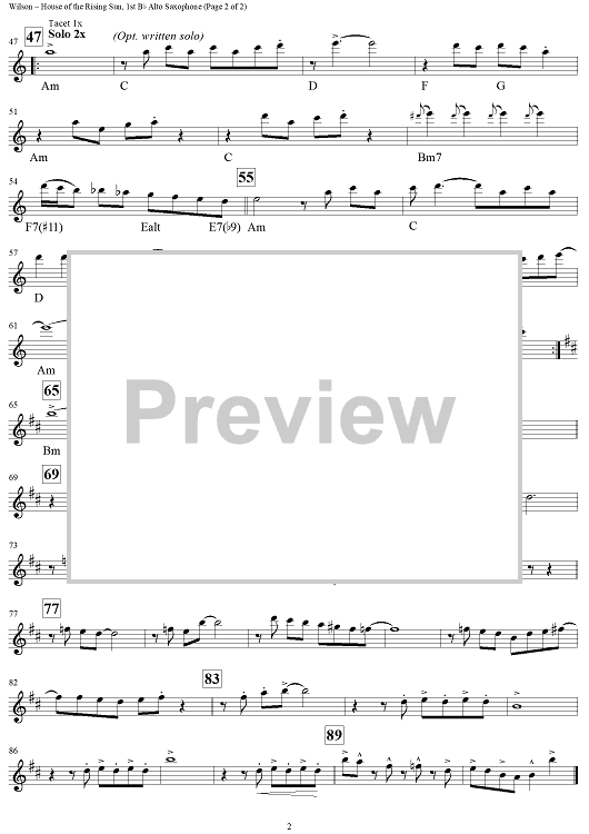Digital Sheet Music for House of the Rising Sun - Alto Saxophone 1 by Ed Wilson, Traditional scored for Jazz Ensemble; id:310112