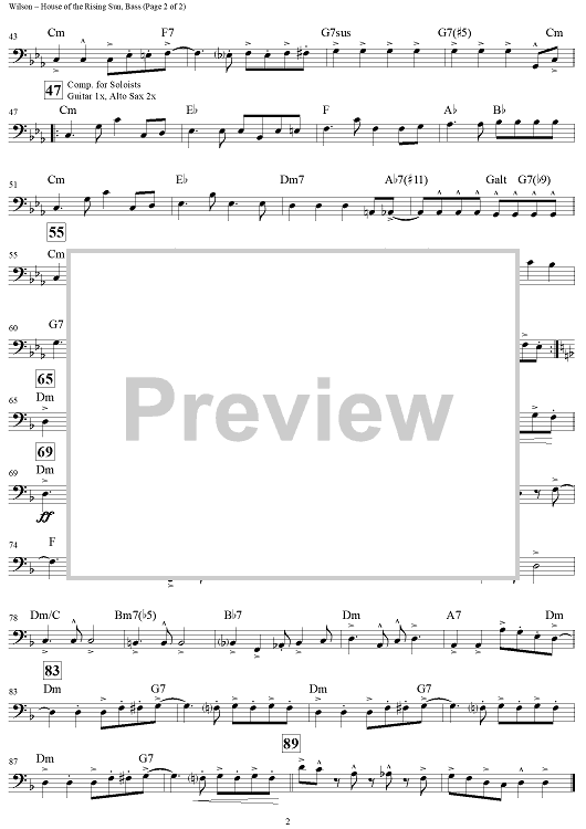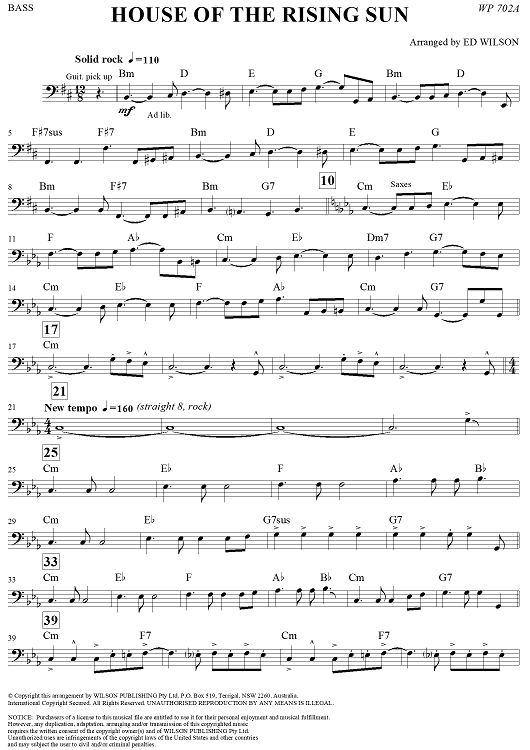 Digital Sheet Music for House of the Rising Sun - Bass by Ed Wilson, Traditional scored for Jazz Ensemble; id:310127