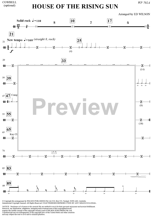 Digital Sheet Music for House of the Rising Sun - Cowbell by Ed Wilson, Traditional scored for Jazz Ensemble; id:310130