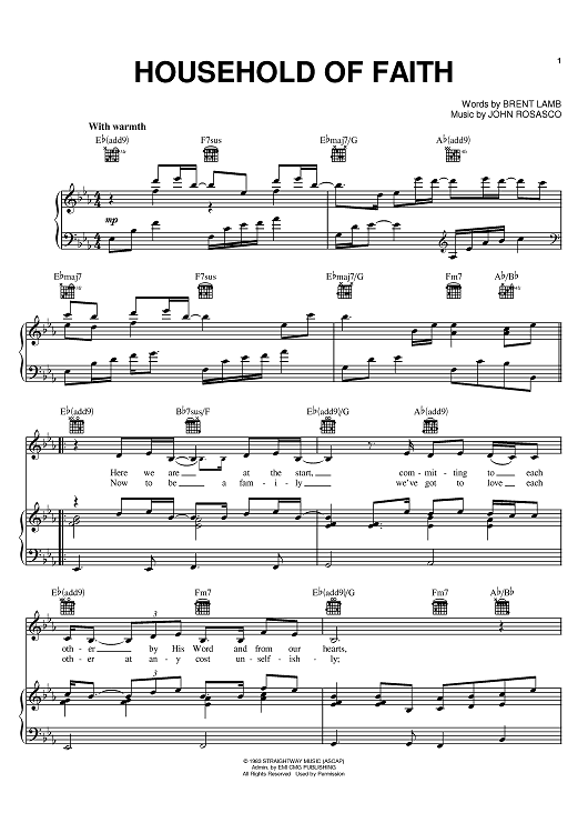 Digital Sheet Music for Household Of Faith by John Rosasco, Brent Lamb, Steve Green scored for Piano/Vocal/Chords; id:388492