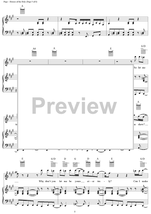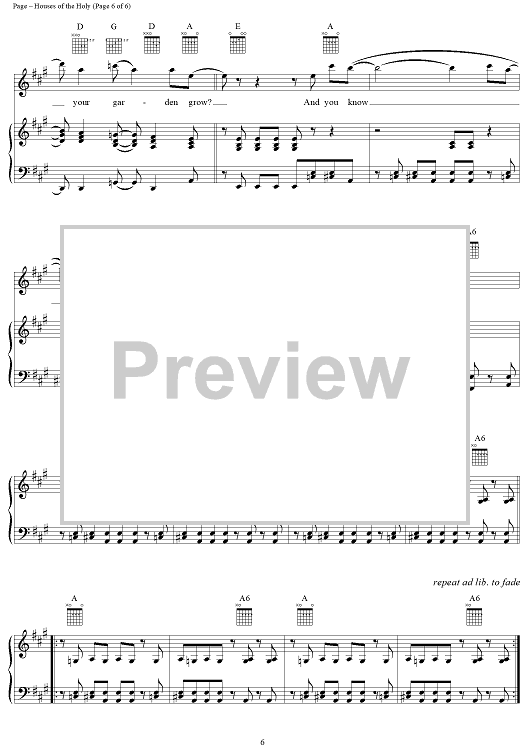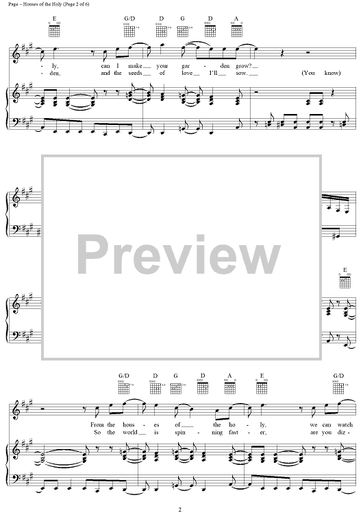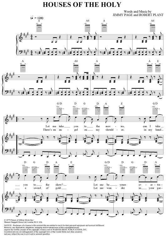Digital Sheet Music for Houses of the Holy by Jimmy Page, Led Zeppelin, Robert Plant scored for Piano/Vocal/Chords; id:119803