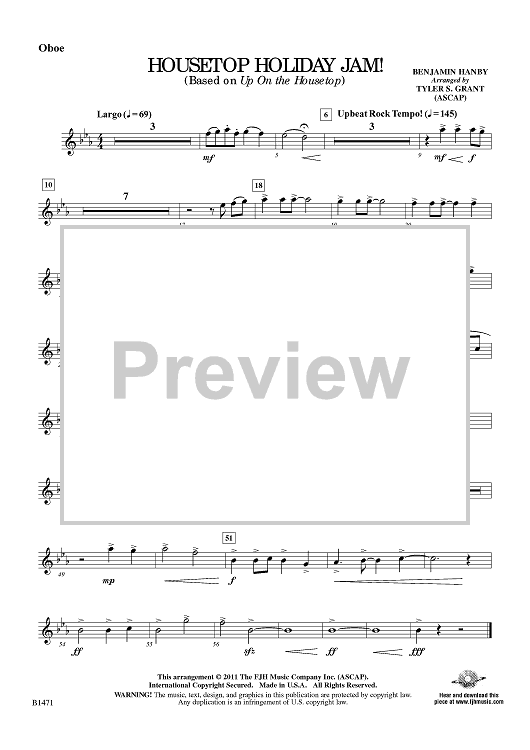 Digital Sheet Music for Housetop Holiday Jam! - Oboe by Benjamin Hanby, Tyler S. Grant scored for Concert Band; id:425686