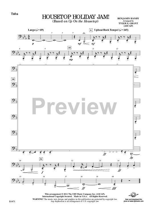 Digital Sheet Music for Housetop Holiday Jam! - Tuba by Benjamin Hanby, Tyler S. Grant scored for Concert Band; id:425701