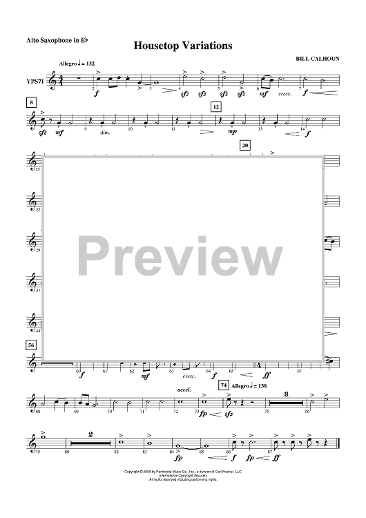 Digital Sheet Music for Housetop Variations - Alto Sax by Bill Calhoun scored for Concert Band; id:409585