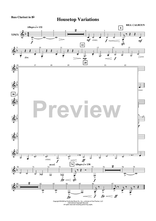 Digital Sheet Music for Housetop Variations - Bass Clarinet in B-flat by Bill Calhoun scored for Concert Band; id:409583