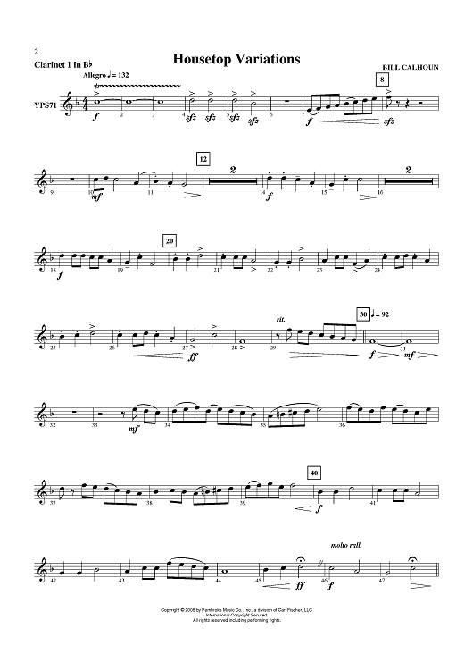 Digital Sheet Music for Housetop Variations - Clarinet 1 in B-flat by Bill Calhoun scored for Concert Band; id:409581