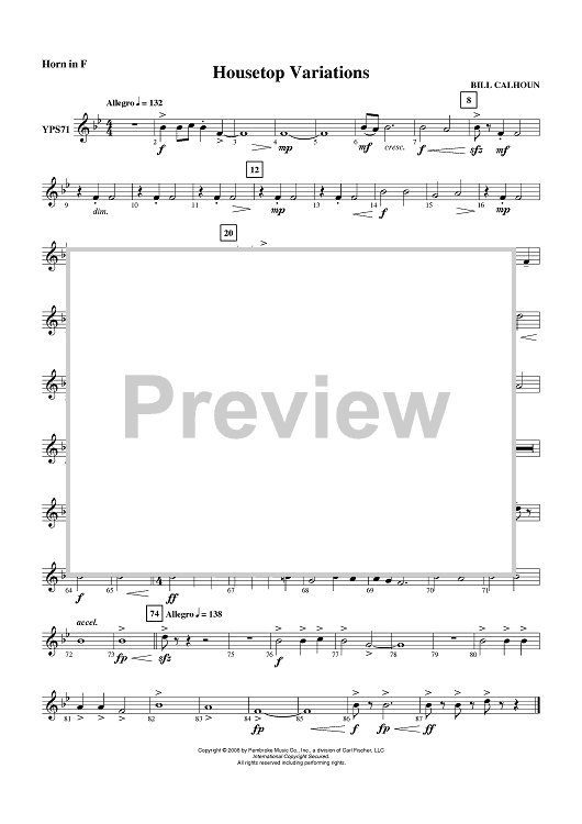 Digital Sheet Music for Housetop Variations - Horn in F by Bill Calhoun scored for Concert Band; id:409590