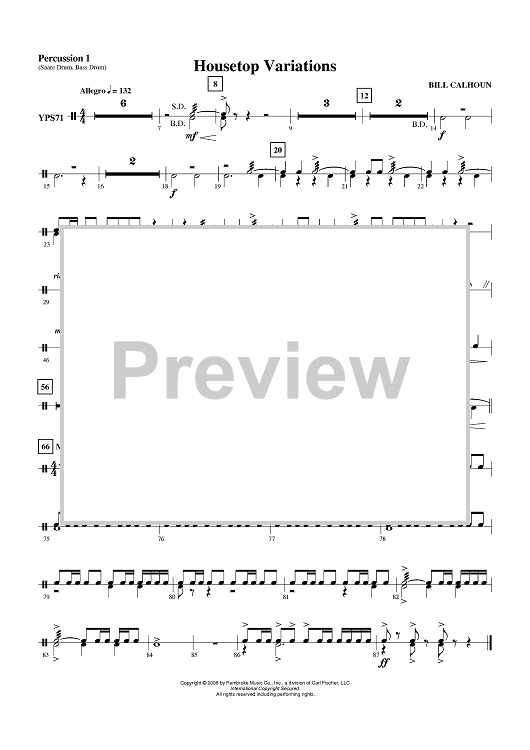 Digital Sheet Music for Housetop Variations - Percussion 1 by Bill Calhoun scored for Concert Band; id:409597