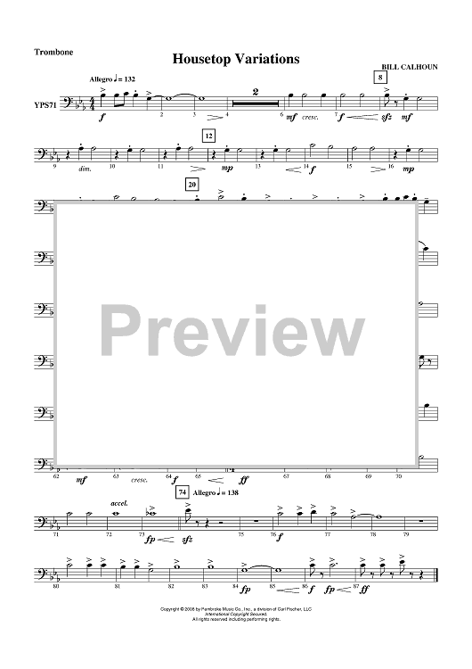 Digital Sheet Music for Housetop Variations - Trombone by Bill Calhoun scored for Concert Band; id:409591