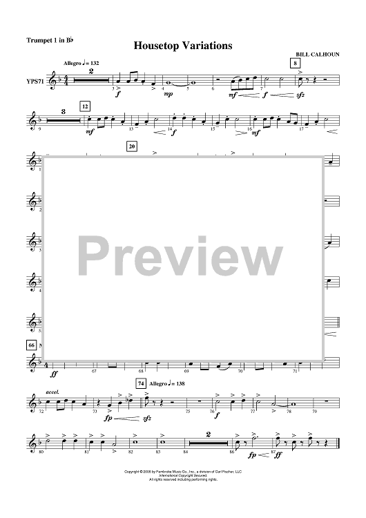 Digital Sheet Music for Housetop Variations - Trumpet 1 in B-flat by Bill Calhoun scored for Concert Band; id:409588