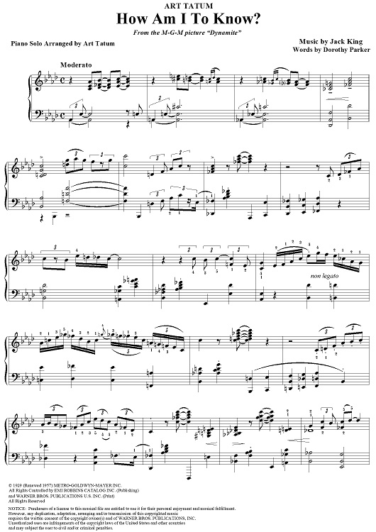 Digital Sheet Music for How Am I to Know? by Art Tatum, Jack King, Dorothy Parker scored for Piano Solo; id:111746
