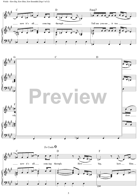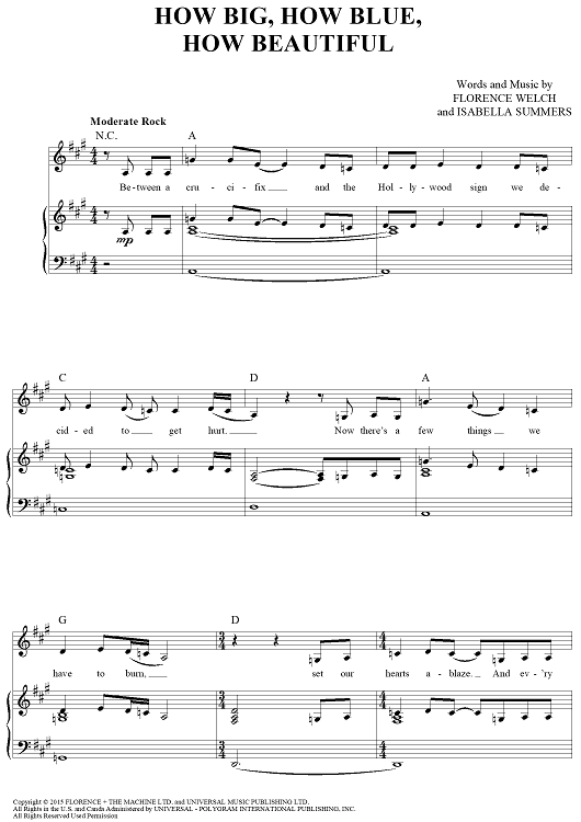 Digital Sheet Music for How Big, How Blue, How Beautiful by Florence Welch, Isabella Summers, Florence and the Machine scored for Piano/Vocal/Chords; id:459102