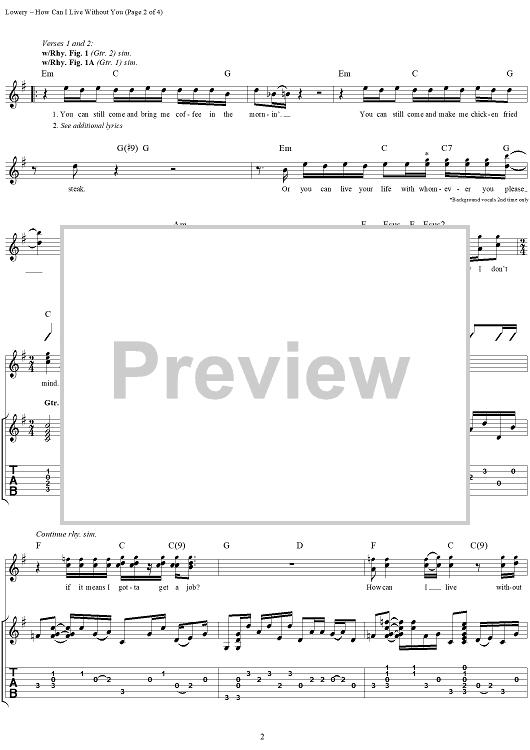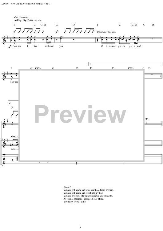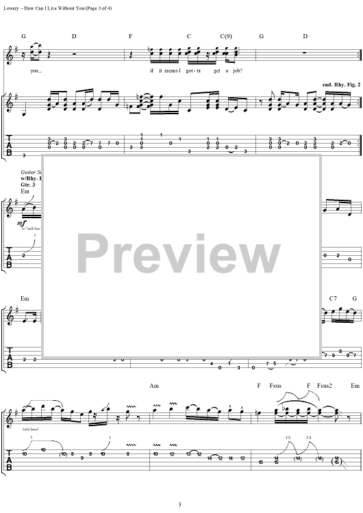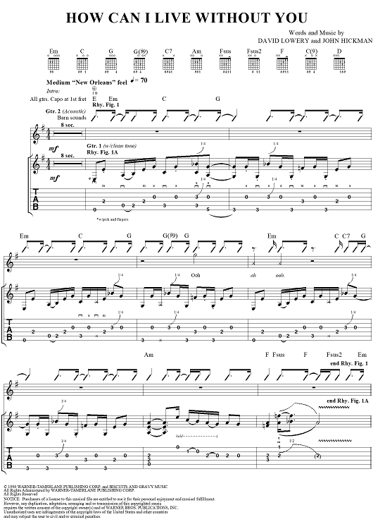 Digital Sheet Music for How Can I Live Without You by John Hickman, David Lowery, Cracker scored for Guitar Tab/Vocal; id:113795