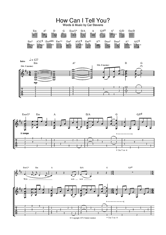 Digital Sheet Music for How Can I Tell You? by Cat Stevens scored for Guitar Tab; id:376731