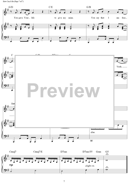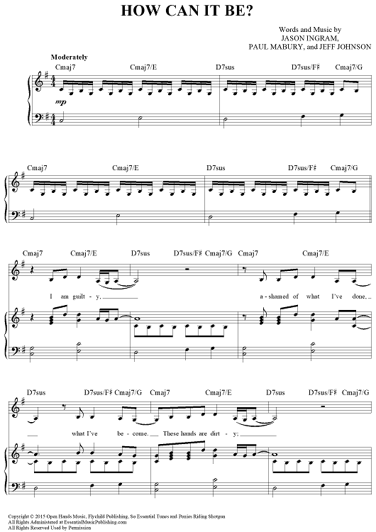 Digital Sheet Music for How Can It Be? by Jason Ingram, Lauren Daigle, Paul Mabury, Jeff Johnson scored for Piano/Vocal/Chords; id:465109