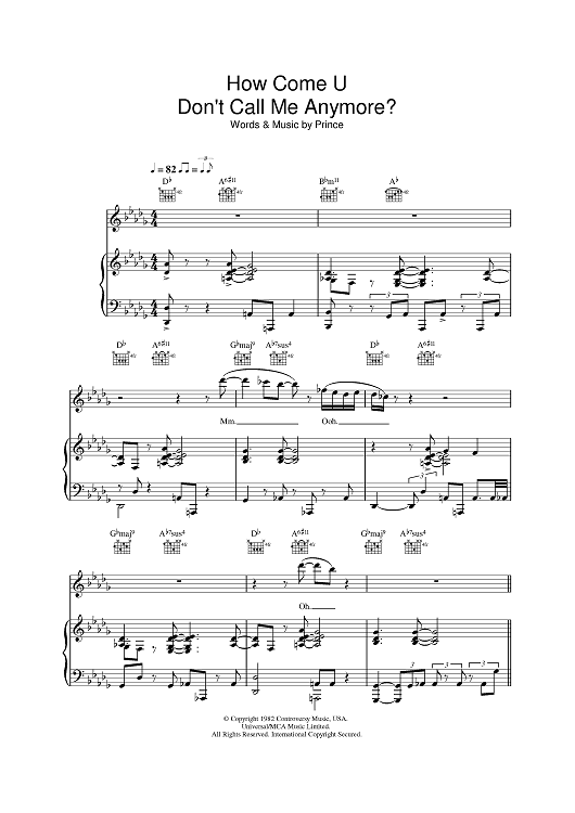 "How Come U Don't Call Me Anymore" Sheet Music by Prince