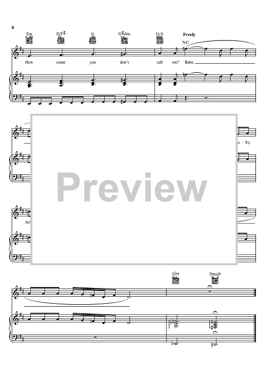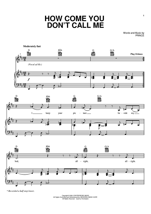 Digital Sheet Music for How Come You Don't Call Me by Prince, Alicia Keys scored for Piano/Vocal/Chords; id:388617