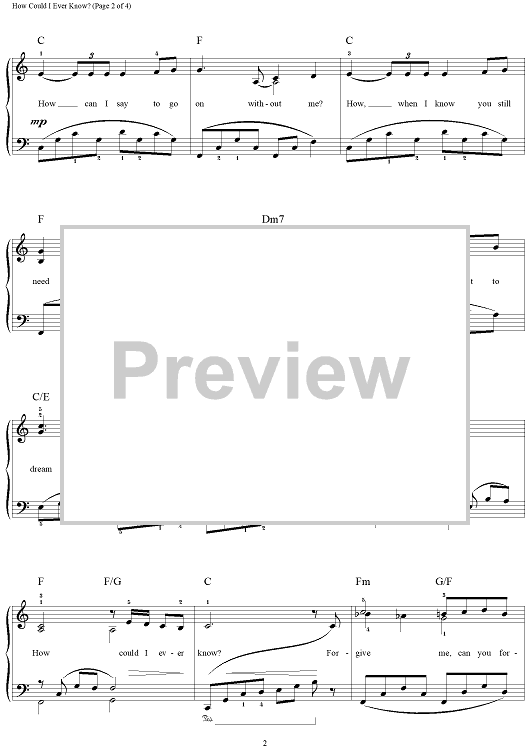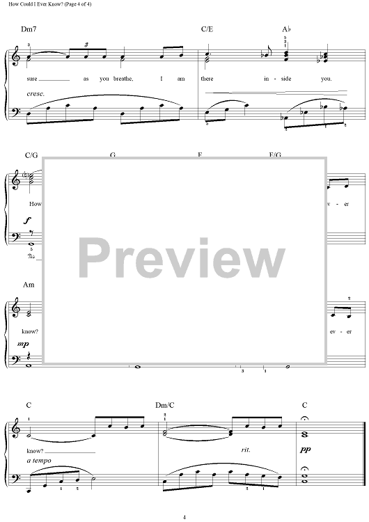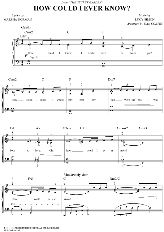 Digital Sheet Music for How Could I Ever Know? by Dan Coates, Lucy Simon, Marsha Norman scored for Easy Piano/Vocal; id:257845