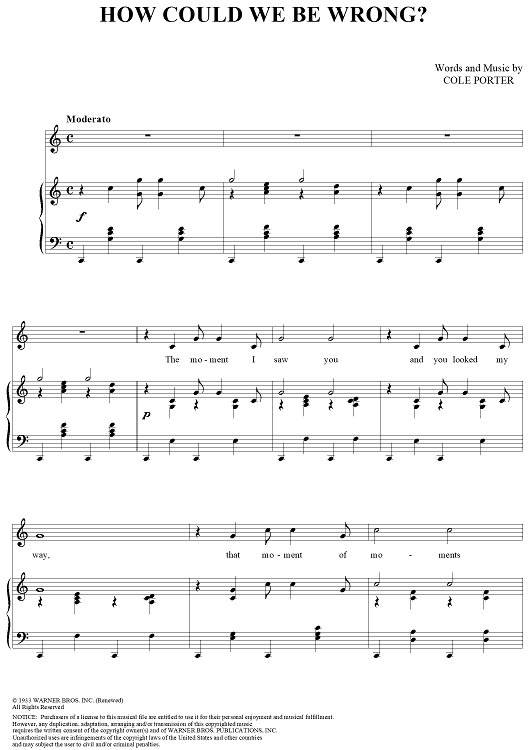 Digital Sheet Music for How Could We Be Wrong? by Cole Porter scored for Piano/Vocal/Chords; id:316510