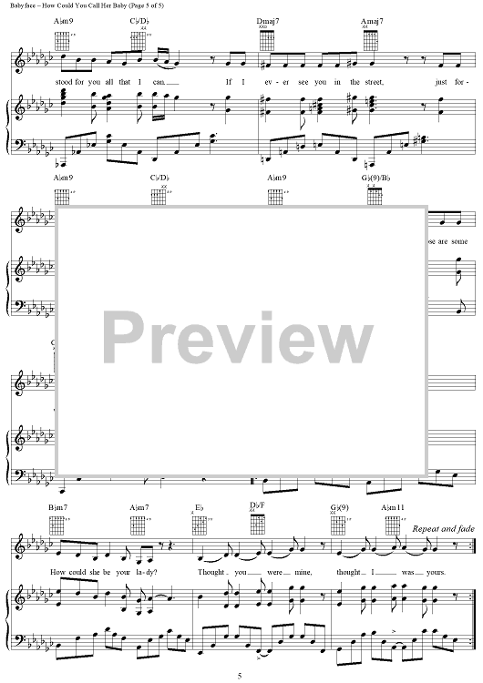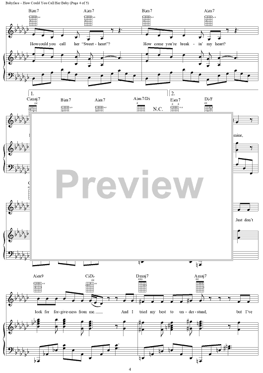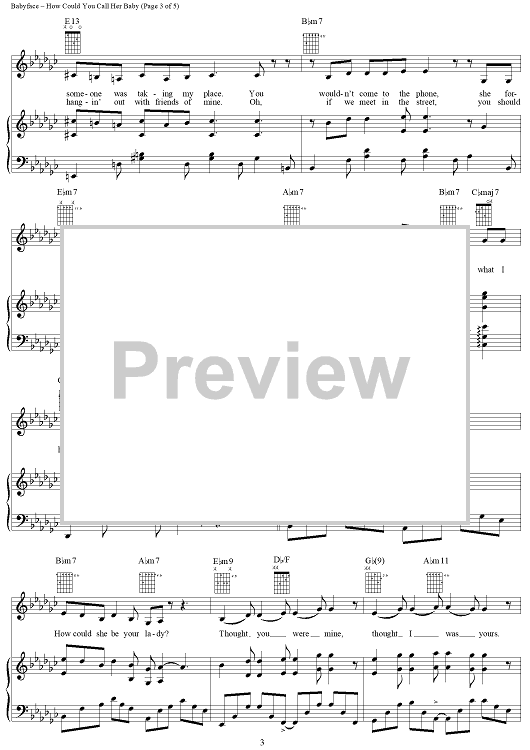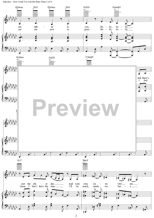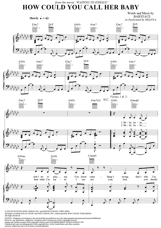 Digital Sheet Music for How Could You Call Her Baby by Shanna, Babyface scored for Piano/Vocal/Chords; id:120427