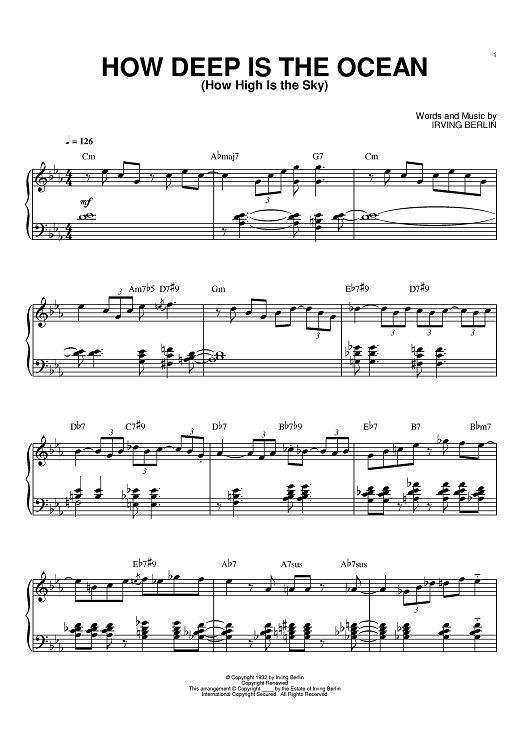 Digital Sheet Music for How Deep Is The Ocean (How High Is The Sky) by Irving Berlin, Bill Evans, Ben Webster scored for Piano; id:382023