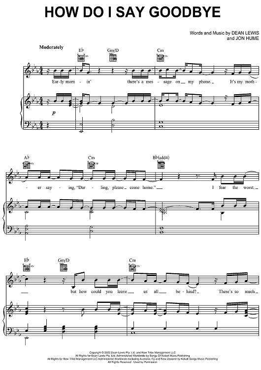 Digital Sheet Music for How Do I Say Goodbye by Dean Lewis, Jon Hume scored for Piano/Vocal/Chords; id:499116
