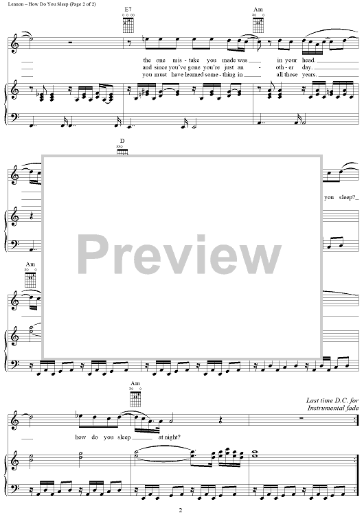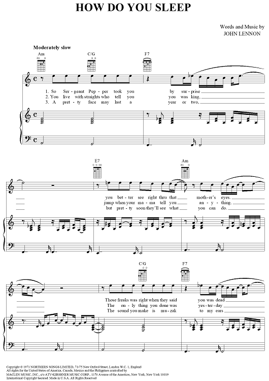 Digital Sheet Music for How Do You Sleep by John Lennon scored for Piano/Vocal/Chords; id:365298