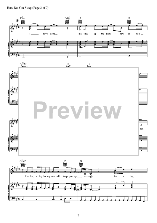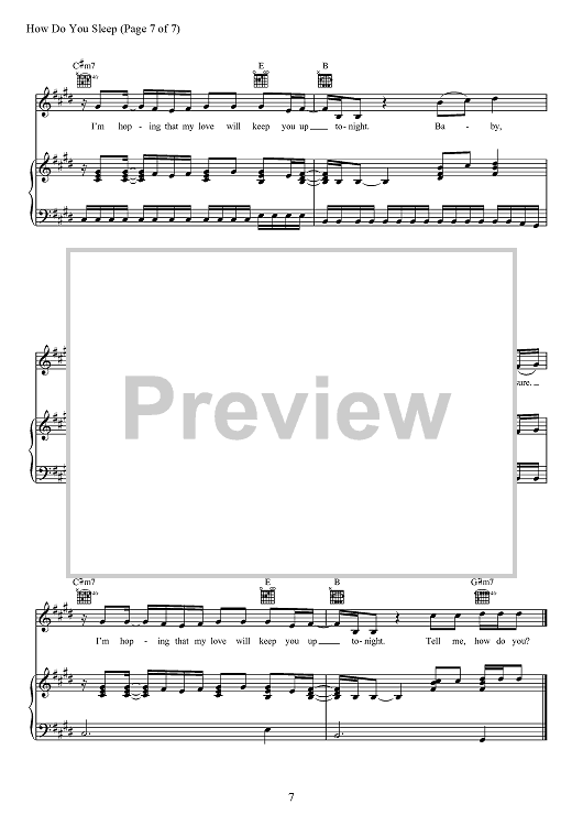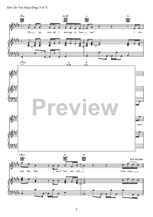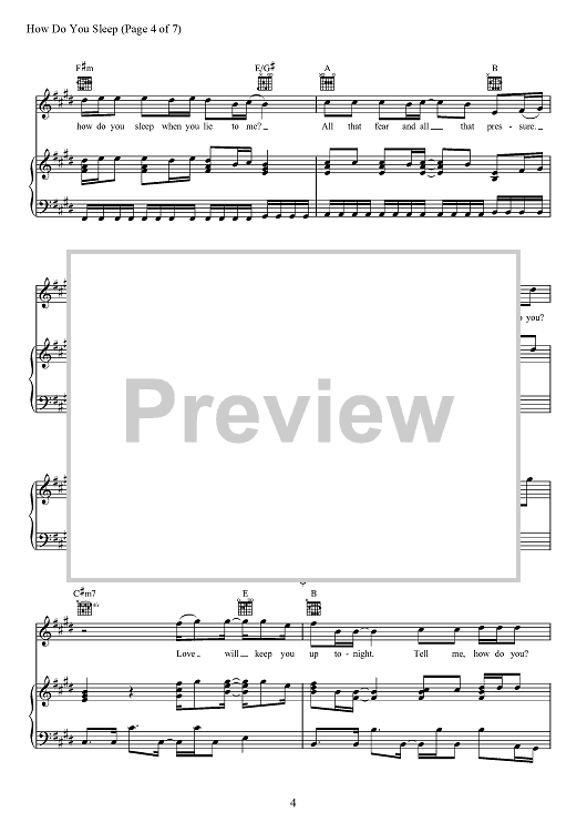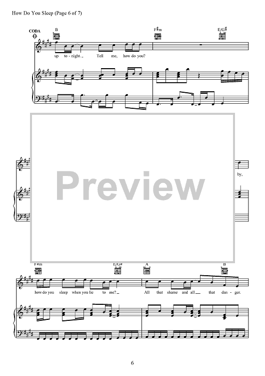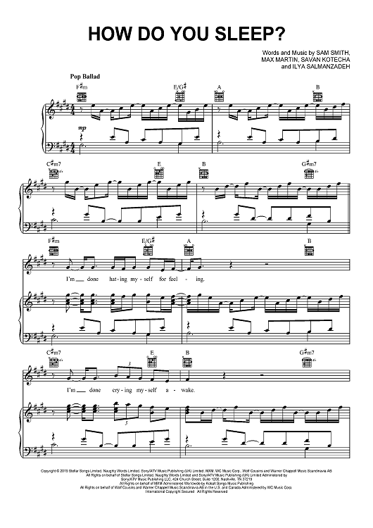 Digital Sheet Music for How Do You Sleep? by Max Martin, Savan Kotecha, Sam Smith, Ilya Salmanzadeh scored for Piano/Vocal/Chords; id:467706