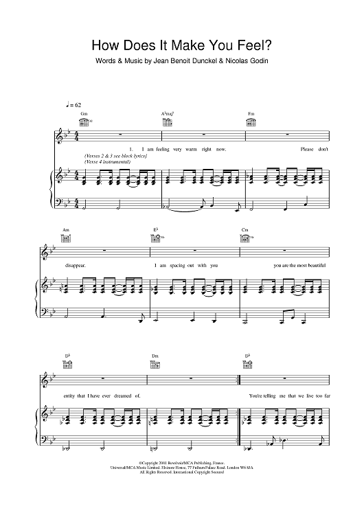 Digital Sheet Music for How Does It Make You Feel? by Air, Jean-Benoit Dunckel, Nicolas Godin scored for Piano/Vocal/Chords; id:380108