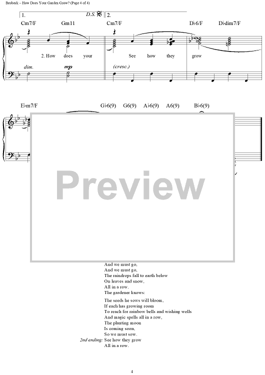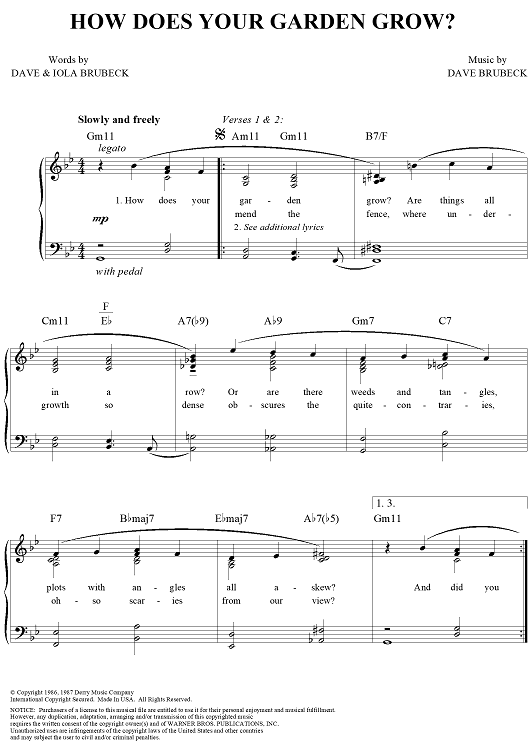 Digital Sheet Music for How Does Your Garden Grow? by Dave Brubeck scored for Piano/Vocal/Chords; id:275730