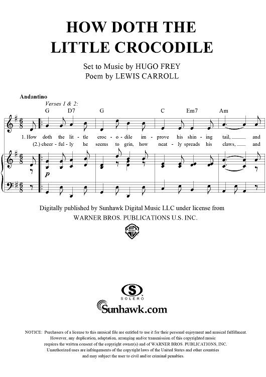 Digital Sheet Music for How Doth the Little Crocodile? by Hugo Frey, Lewis Carroll scored for Piano/Vocal/Chords; id:273312