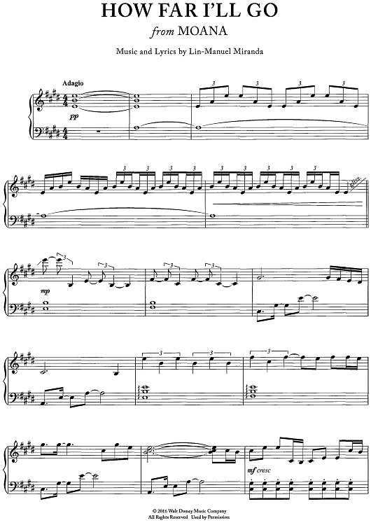 Digital Sheet Music for How Far I'll Go - from Moana by Lin-Manuel Miranda scored for Piano Solo; id:468919