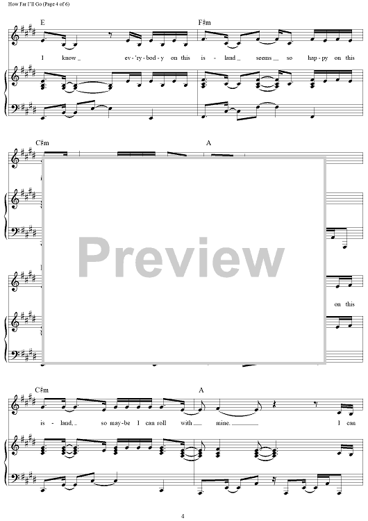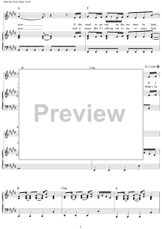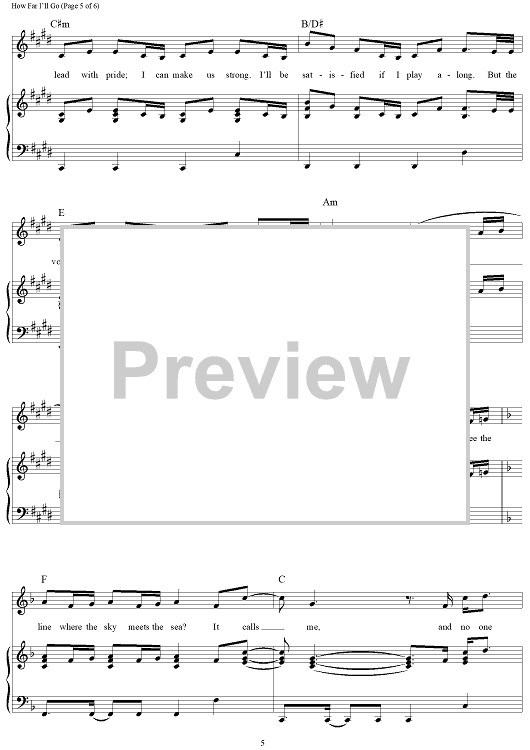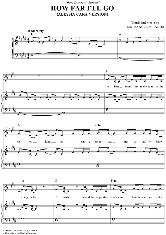 Digital Sheet Music for How Far I'll Go ("Moana") by Lin-Manuel Miranda, Alessia Cara scored for Piano/Vocal/Chords; id:463310