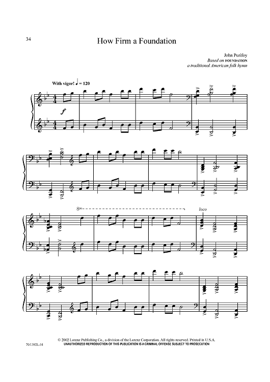 Digital Sheet Music for How Firm a Foundation by John Purifoy, Traditional American folk hymn scored for Piano Solo; id:433578