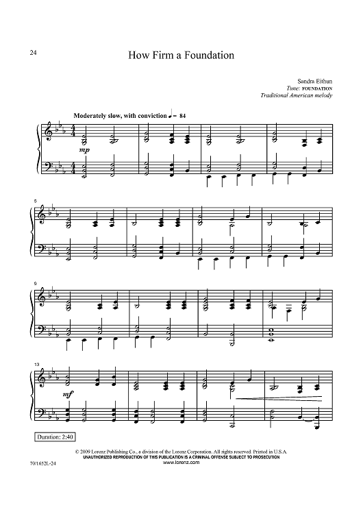 Digital Sheet Music for How Firm a Foundation by Traditional American Melody, Sandra Eithun scored for Piano Solo; id:434043